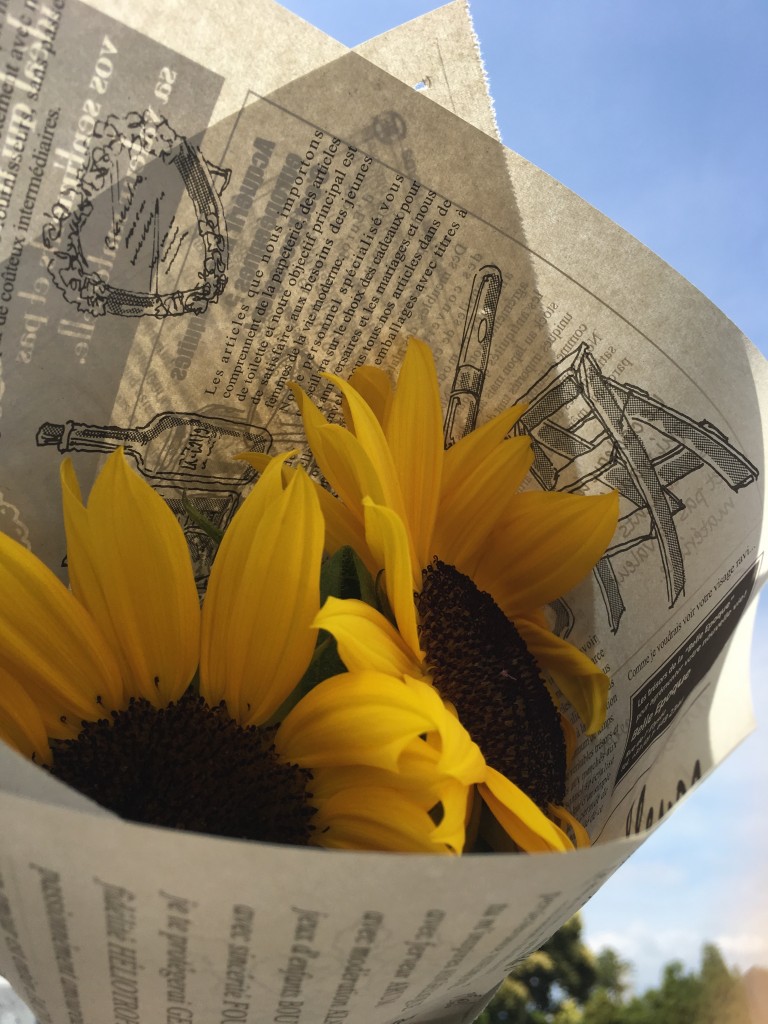 そんな初夏の花?ひまわりを持って