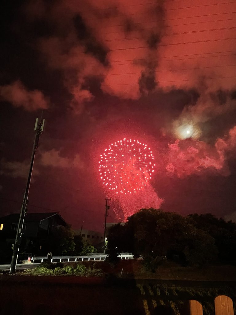 去年は延期になったから予定が狂った人もいたと思うんですけど2024年は台風の影響もなくお天気も良く、程よく風も吹いていて、最高の花火大会日和だったと思います。