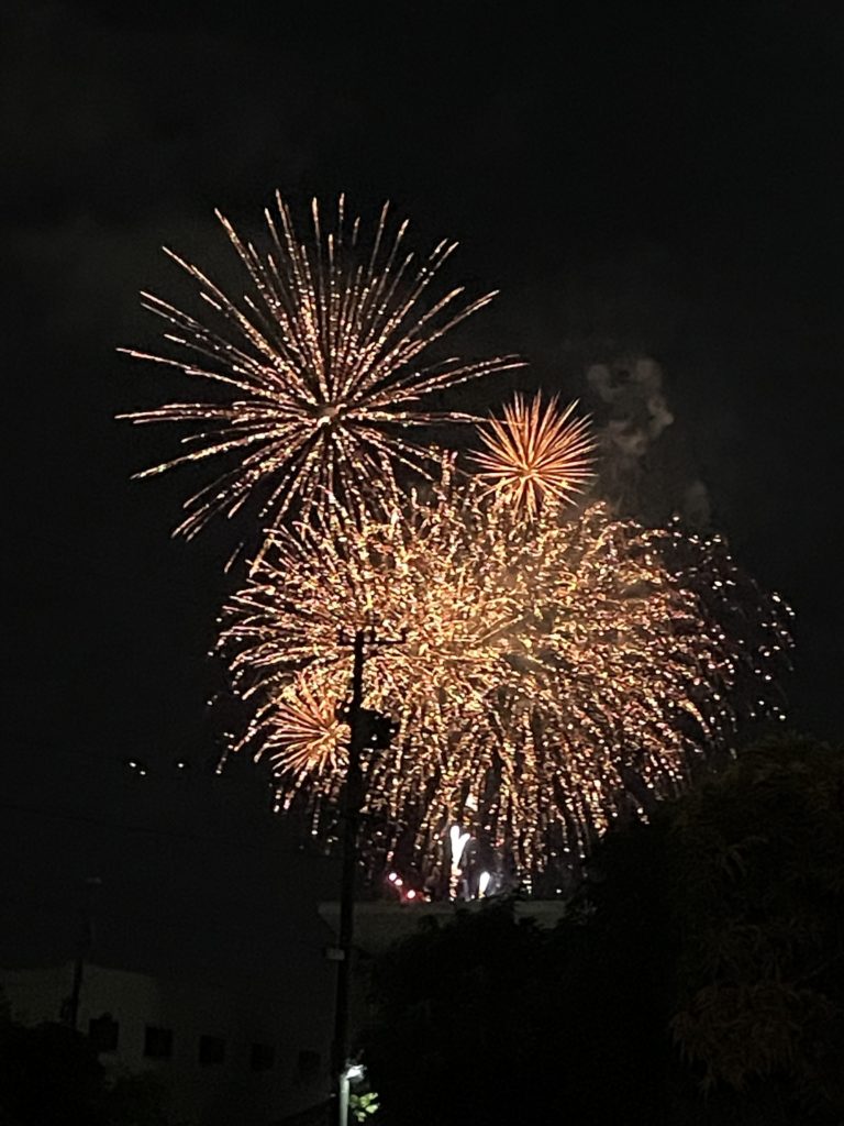 色々と経費もかかるみたいなんで運営に携わっている方々は寄付集めなど大変だと思いますが、今年は花火のあがる数が若干減ったのかな?