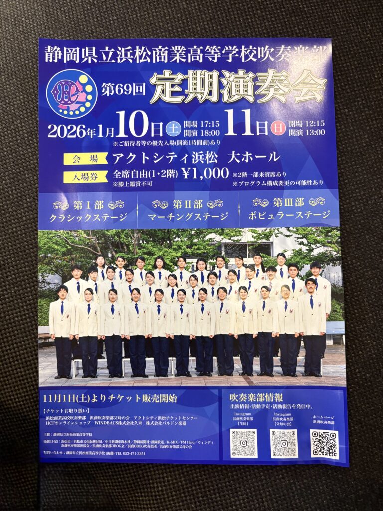 そして今年も浜商定期演奏会に広告を出させていただく事になりました^ ^
